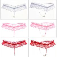 (情趣内衣)激情蕾丝开裆T裤女性低腰透明内裤蕾丝按摩开档性感丁字裤(红色)