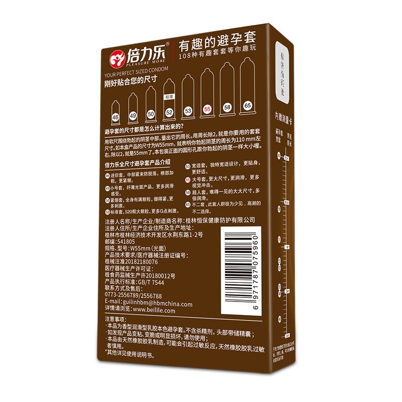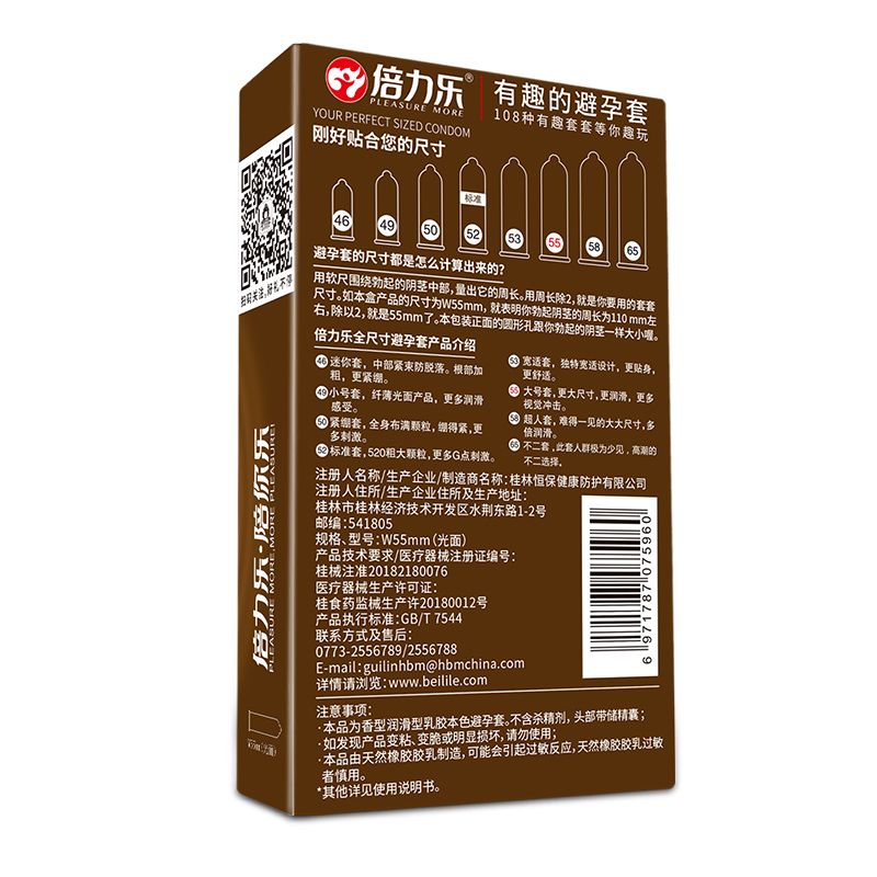 【避孕润滑】倍力乐大号安全套10只装(方包)